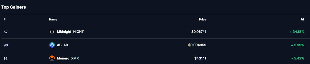 Top 3 Gainers.
